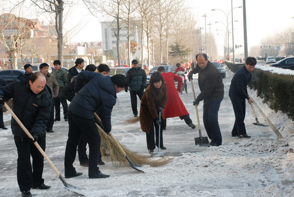 12月22日上午,集團公司積極響應市政府號召,組織廣大干部職工盡快清除大廈院內、門前、非機動車道路上的積雪積冰。大家你鏟我掃、你推我倒,忙得不亦樂乎,大約一個小時,積雪就被清理干凈,方便了辦事人員、行人、車輛出行,營造了安全、整潔、干凈的道路通行環境。